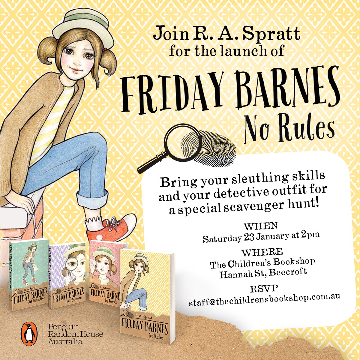 Meet me at The Children’s Bookshop in Beecroft 2pm tomorrow! January 22, 2016 By raspratt Share this: Click to share on Facebook (Opens in new window) Facebook Click to print (Opens in new window) Print Click to email a link to a friend (Opens in new window) Email Like Loading... Related About raspratt Author and television writer. Best known for writing the 'Peski Kids', 'Friday Barnes' and 'Nanny Piggins' series.