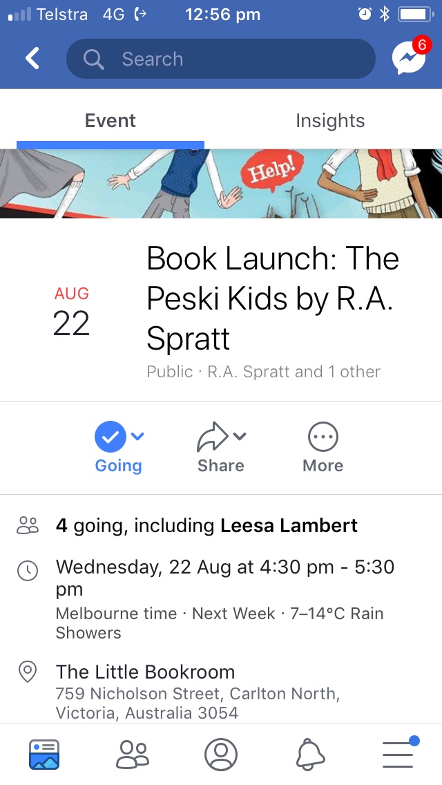 Come to the Melbourne launch of THE PESKI KIDS! August 15, 2018 By raspratt For more information see The Little Bookroom’s Facebook page. Share this: Click to share on Facebook (Opens in new window) Facebook Click to print (Opens in new window) Print Click to email a link to a friend (Opens in new window) Email Like Loading... Related About raspratt Author and television writer. Best known for writing the 'Peski Kids', 'Friday Barnes' and 'Nanny Piggins' series.